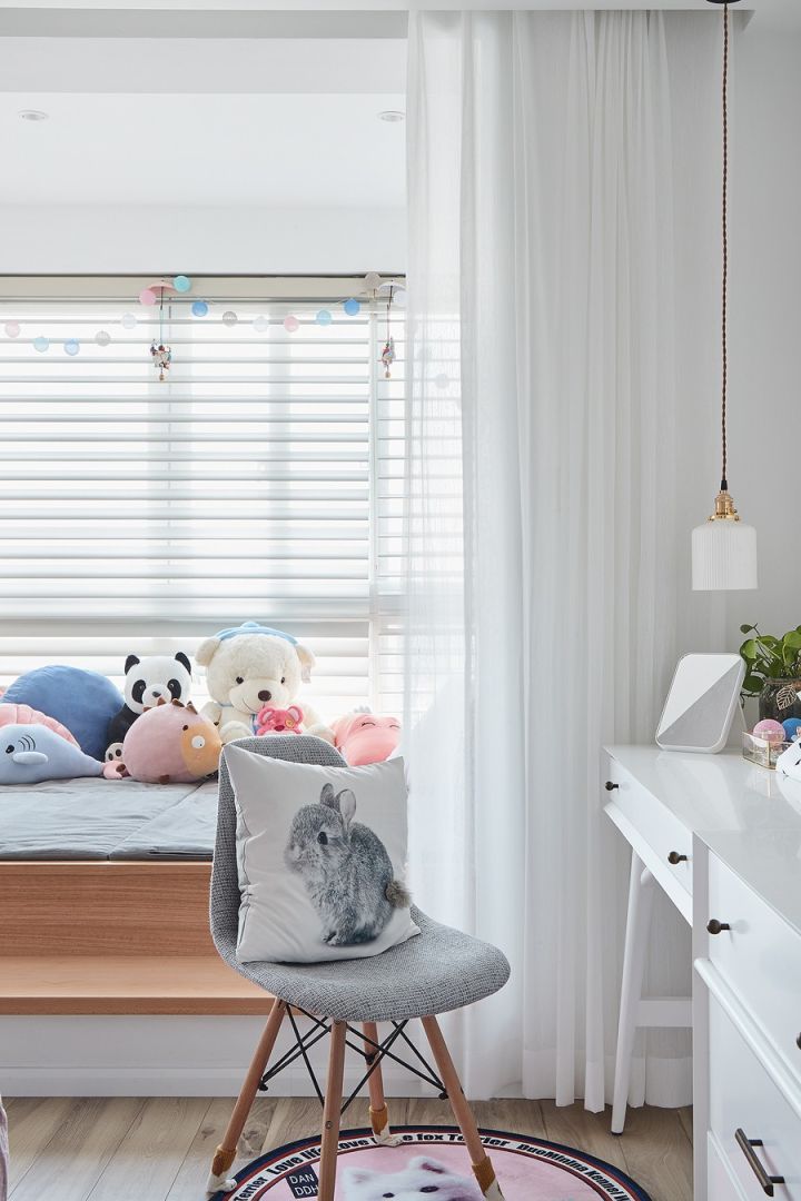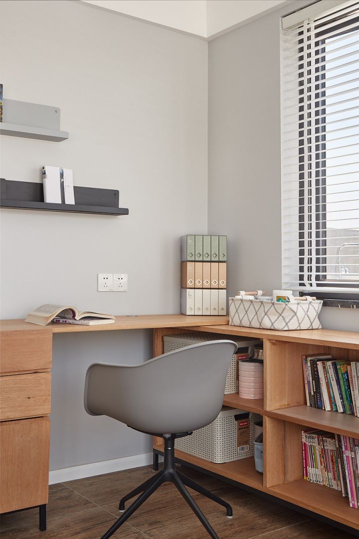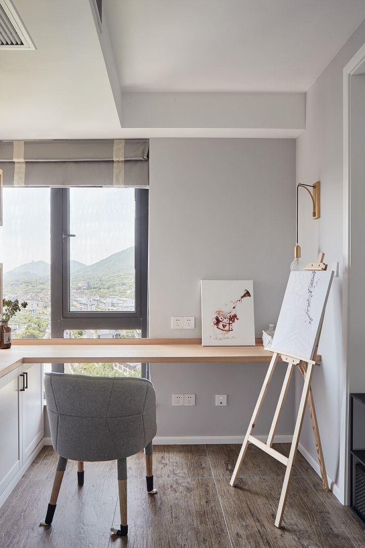 沿着转角窗的布置桌面,画画和做手工的时候能接收更多自然光。