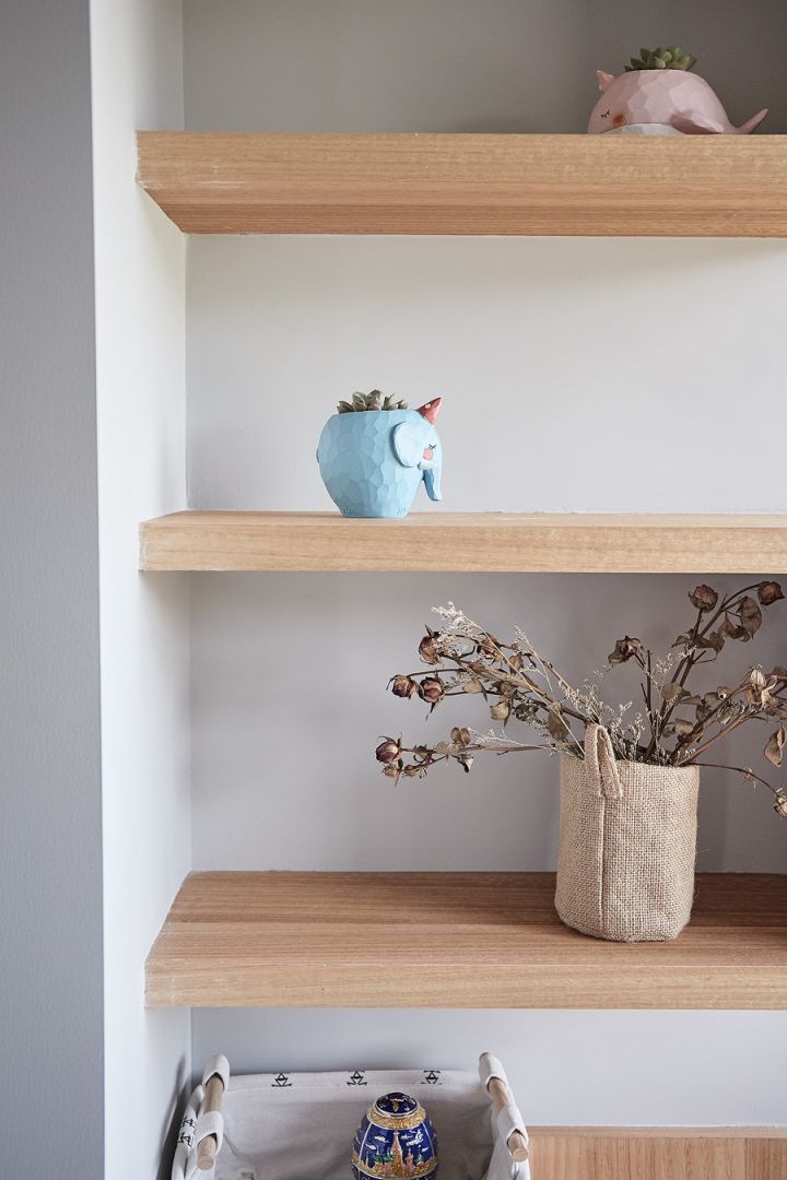 侧墙上打了收纳柜和置物架,要在榻榻米上堆满自己喜欢的玩具和小东西。