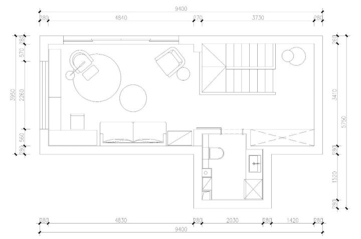 ▲二楼平面图,除卫生间全开放