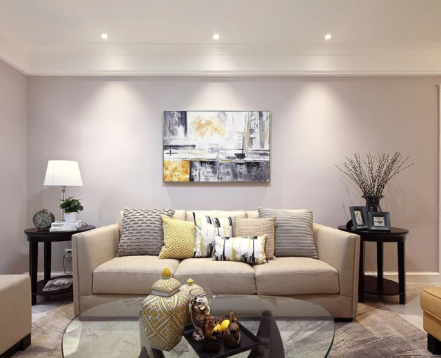射灯是两排3米长的轨道,各自距离墙面70cm,每条轨道上3盏灯,一共6盏,灯光范围可以覆盖整个客厅区域,每盏18瓦,色温4000K,说实话晚上一般开3盏都够了。
