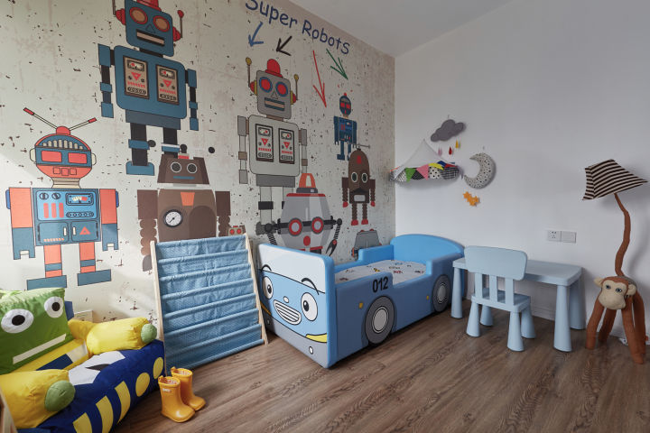 家具也都很迷你,方便挪来挪去,让空间丰富有趣。等儿子大一点,就可以选择更大的床,更大的书桌了。