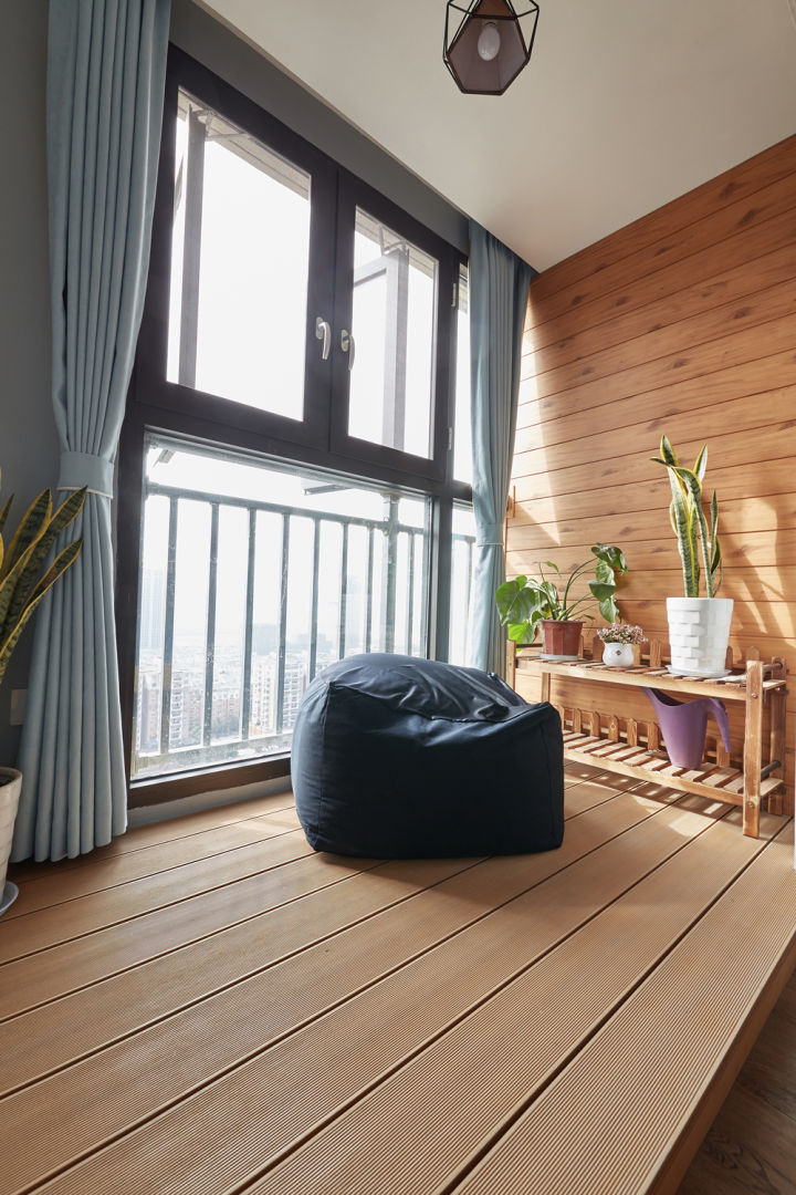 一个舒适的小空间大大增加居住的幸福感。家里最喜欢的空间就是主卧,因为房子前面没有遮挡,有太阳的时候窝在阳台的懒人沙发上面看书非常舒服。