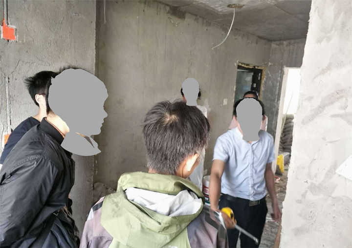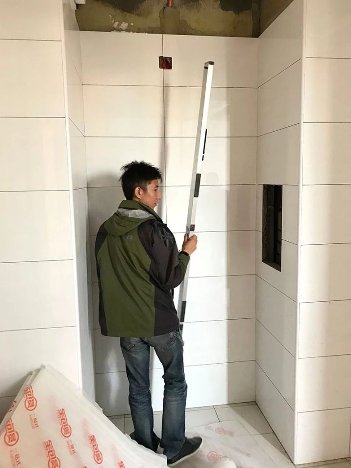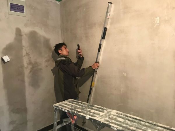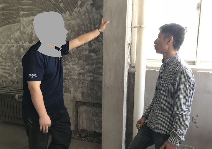 快到9点的时候,“慢半拍”终于赶到了用户家门口。一个纤瘦、满脸和善、眼睛很大的人给他开了门,正是杨威监理。简单介绍情况之后,监理就继续工作,用靠尺来检测墙面平整度。