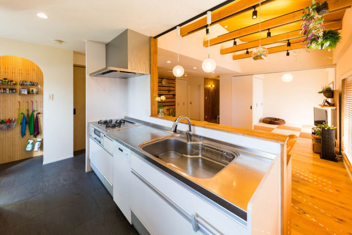 专业的不锈钢大台面,烹饪过程便捷流畅,C先生经常会下厨给妻子孩子做便当。