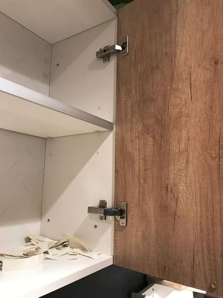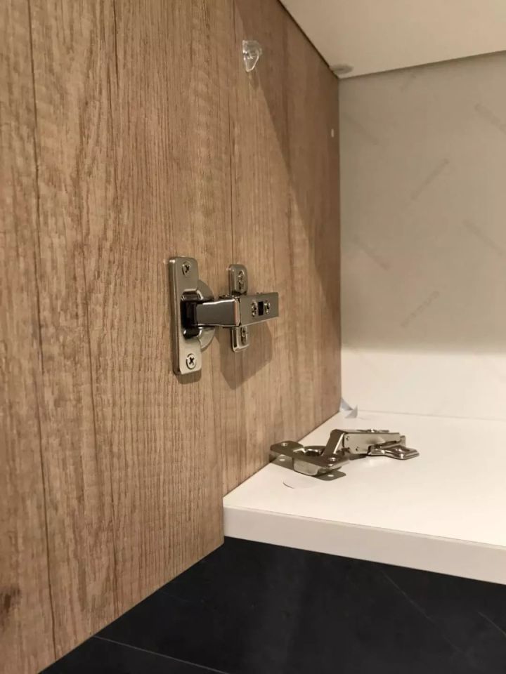 光是一身钢筋铁骨还不够,优秀的铰链还要具备完美的柔韧性,可以在店面动手开关柜门实际感受一下。橱柜的吊柜门,对铰链的开合角度要求是大于90度,避免开门时磕到人的肩膀;有些铰链的开合角度甚至都超过180度了。
