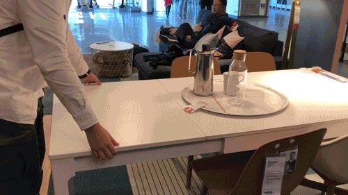说到适用小户型的多功能变形家具,大众最熟悉的不过宜家了,伸缩的餐桌日常缩小节约空间,来人聚餐也能展开。