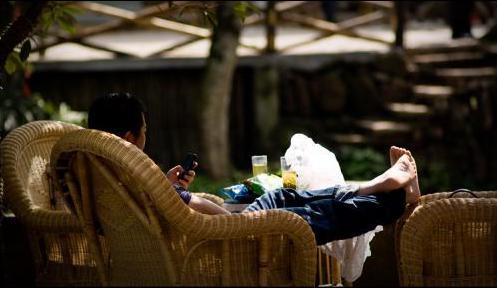 摇椅不但坐深短,而且靠背也有点高,正经坐好后,下腰部分是完全镂空,没有支撑,长时间的坐靠很有可能反而乏累。