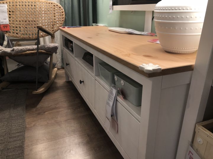 不过要吐槽的是,宜家为了贯彻节约成本的理念,大多数柜子只要最底层是抽屉结构,那么底部就不做底板,只用横梁做支撑来节省用料。