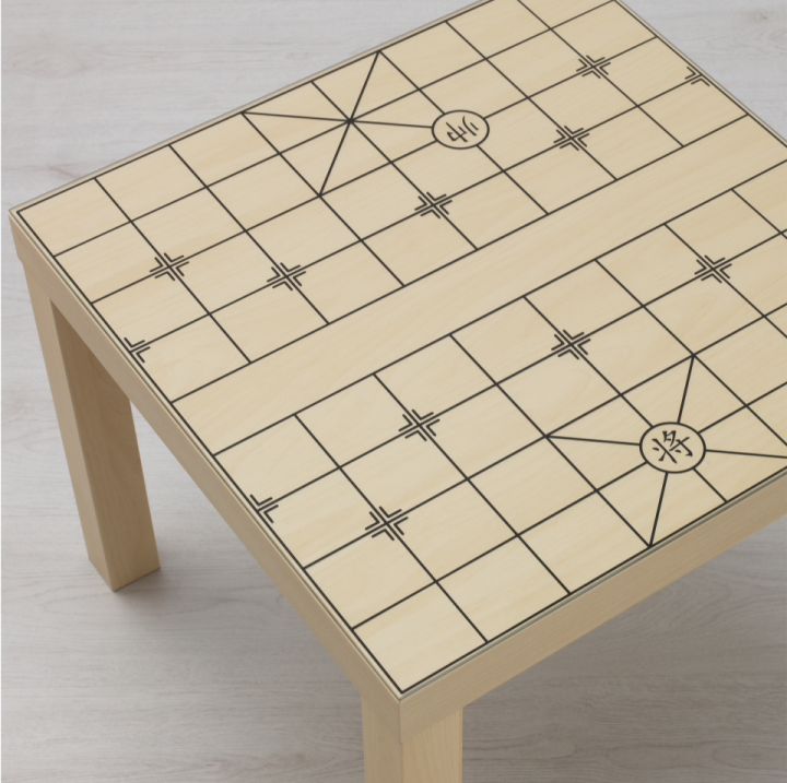 就是这货,一块玻璃制的台面板,直接放在拉克边桌上就可以下中国象棋了,但是仔细看,边线根本无法放置棋子……可能设计者对中国象棋有什么误解吧,这一定是个外国人设计的。