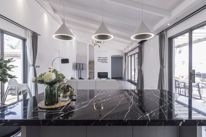 石英石坚硬、耐磨、耐压、耐高温、抗腐蚀、只有轻微渗色,是目前最结实耐用的台面材质。
