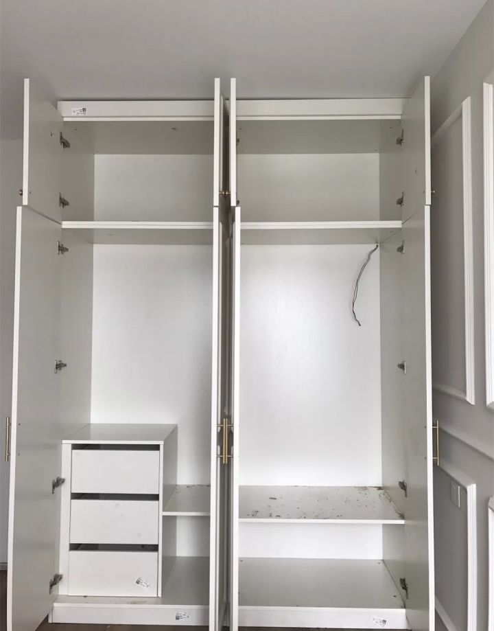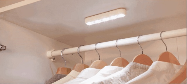 先大致确定衣柜的位置,水电改造时在墙上预留电线,后期再把电线接到灯上。如果忘记留电线,就只能使用充电电池款的感应灯了。