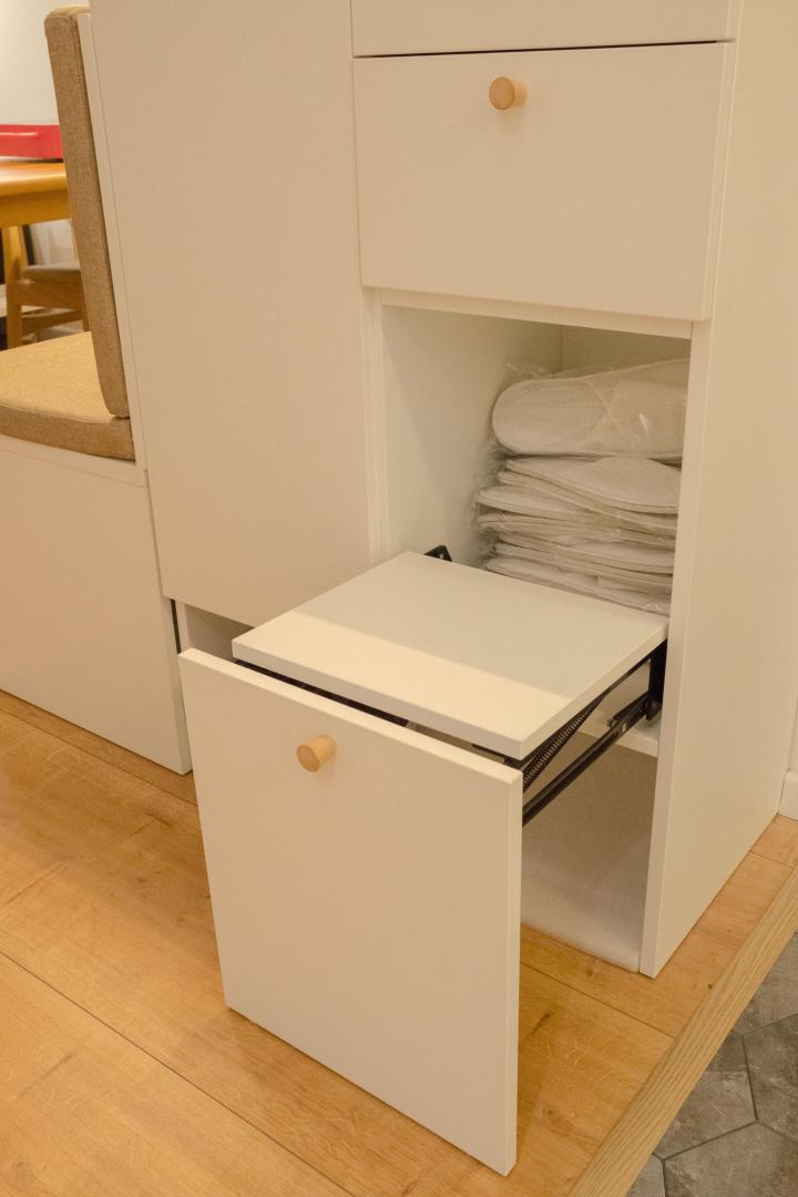 除了抽屉还可以做拉篮,原因类似,但拉篮的空间很高,能够放进大瓶调料。