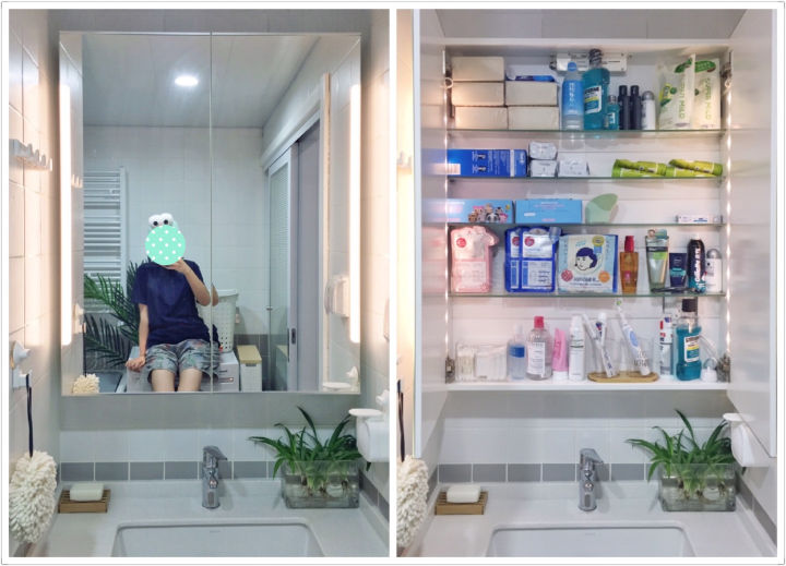 在卫生间洗漱,人手最方便够得到的地方就是镜子,后面不装常用物品简直浪费。