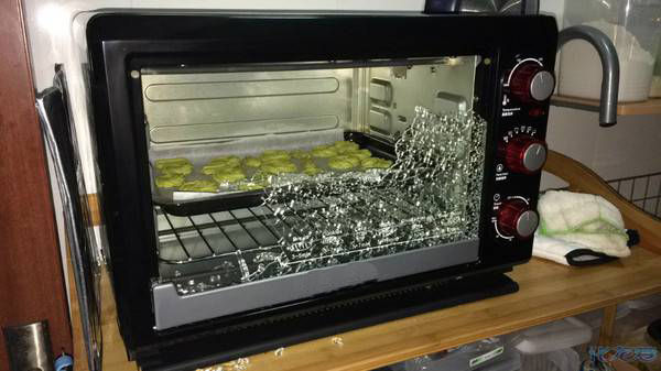 有的烤箱一工作外壳、门就很烫,完全不敢靠近,有小孩的家庭就更别说有多危险了,更有单层玻璃面板的烤箱门炸裂的案例。