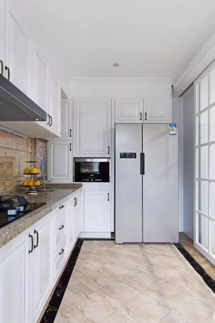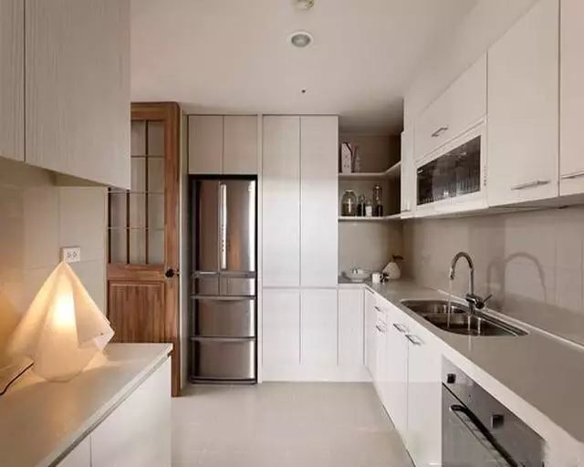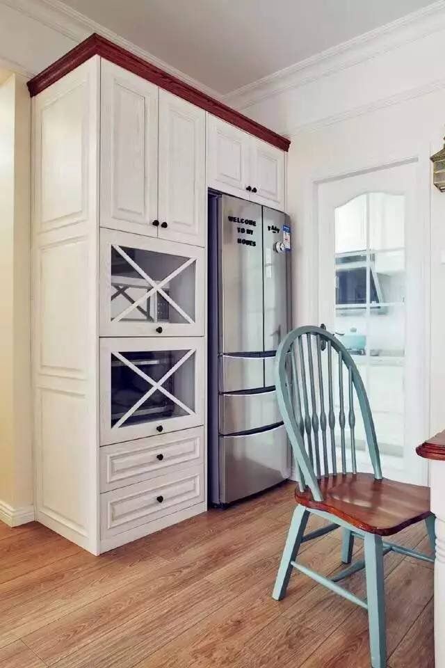 虽说可以放下冰箱,但厨房寸土寸金,何况还要给冰箱左右两侧及背后预留5~10 cm的散热空间(同时也利于柜门的打开)。