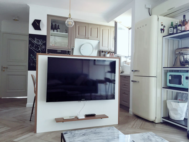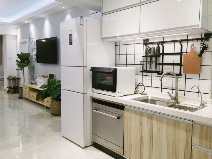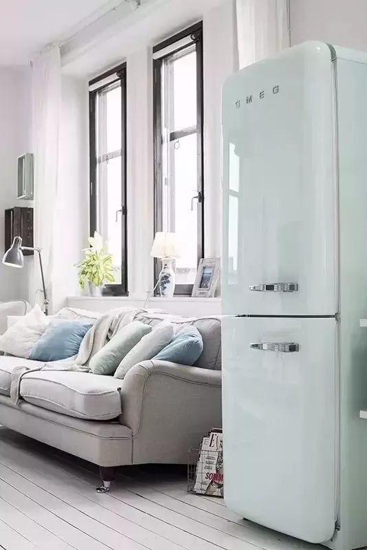 很多开发商预留的厨房面积都小的可怜,把橱柜、蒸烤箱、消毒柜、洗碗机等等功能放到厨房后,冰箱就真的没地儿了,这时候只能放到餐厅或客厅。