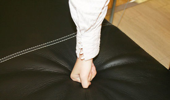 用手指按压,真皮周围有细小的皱纹,手指拿走后皱纹消失,而仿皮按压后不会有皱纹,这也是最简单的鉴别方法之一;