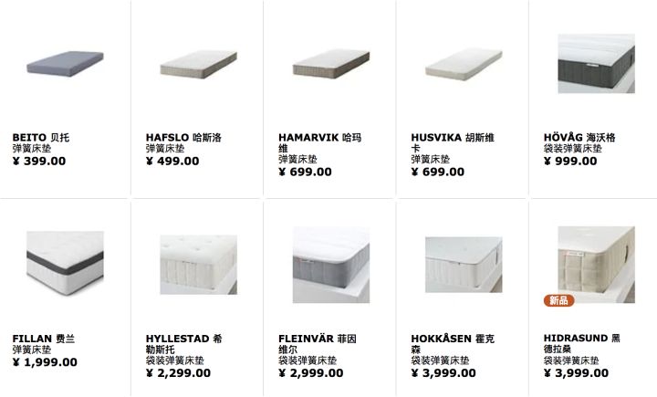 想把预算控制在3000元以内,最推荐的还是宜家,产品线相当丰富,性价比高,对于睡眠要求不那么高的童鞋是个好选择。