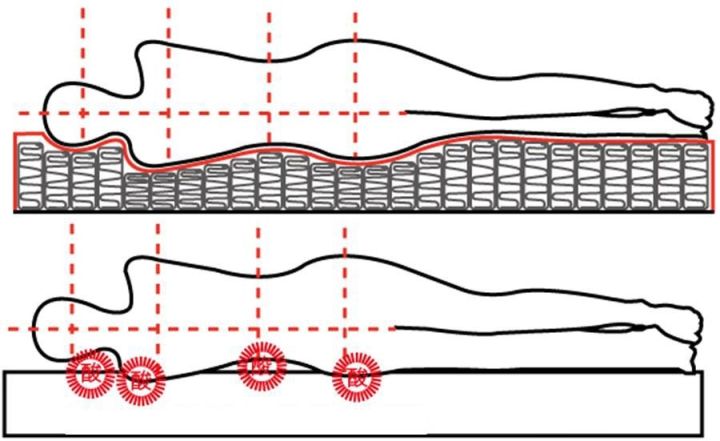 ▲独立弹簧床垫(上图)和普通弹簧床垫(下图)