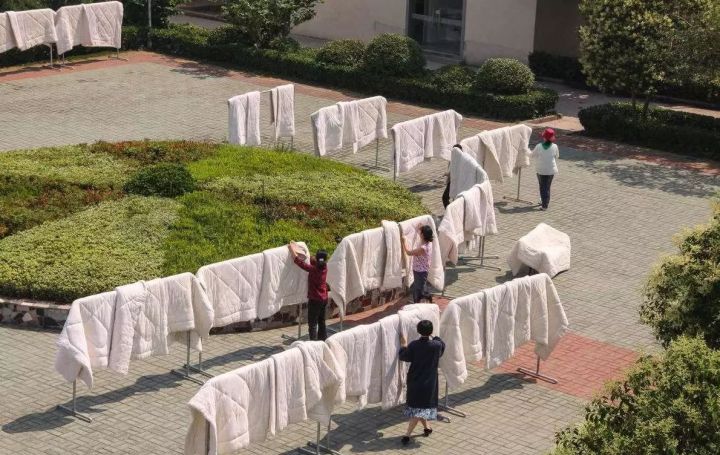 早先刚有现代家装的时候,家家户户都睡木板床或者棕绷床,用棉絮做的褥子当床垫,睡一段时间后,棉絮就变得很硬,在潮湿的南方,棉絮还会变得阴冷发霉,所以有了一到晴天,姑嫂妯娌纷纷拿被子到太阳底下晾晒的情景,场面非常壮观。