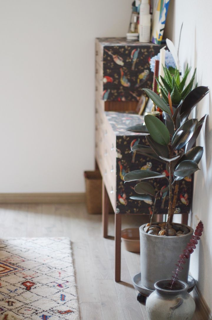 热爱绿色,不吝啬把家里每个角落都摆上绿色,玄关迎宾植物每半月换一换,享受这个摆弄家、让家不断变好的过程。