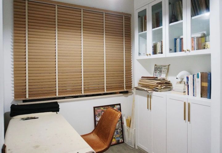 爱皮狂人的工作椅,毫无意外也是皮质的,不过颜色选了温和的棕色,跟从书房整体的格调。