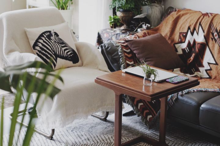 不想占用客厅的面积搞一个沉重的茶几,这只小边几轻便颜值高。