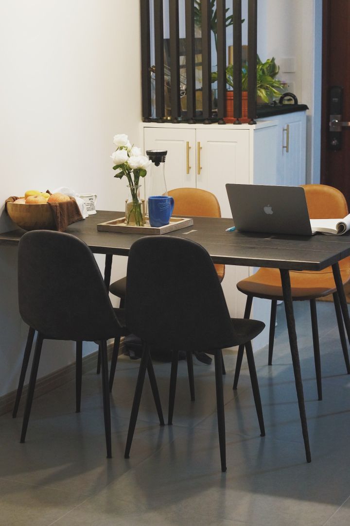 配了很舒服的皮椅,于是这里成了使用率特别高的地方,能用平板完成的工作都在餐桌上进行了,还有烘焙、插花、手工。