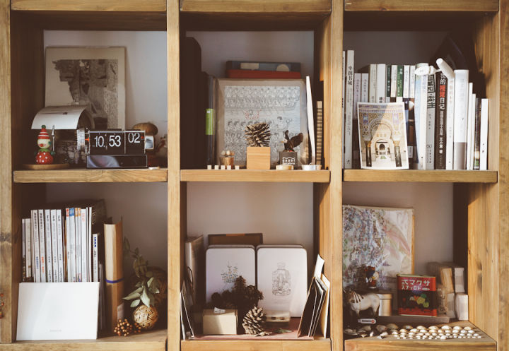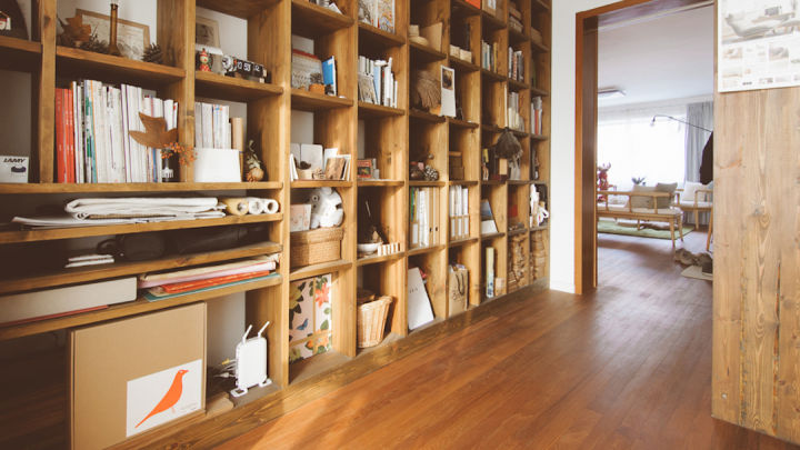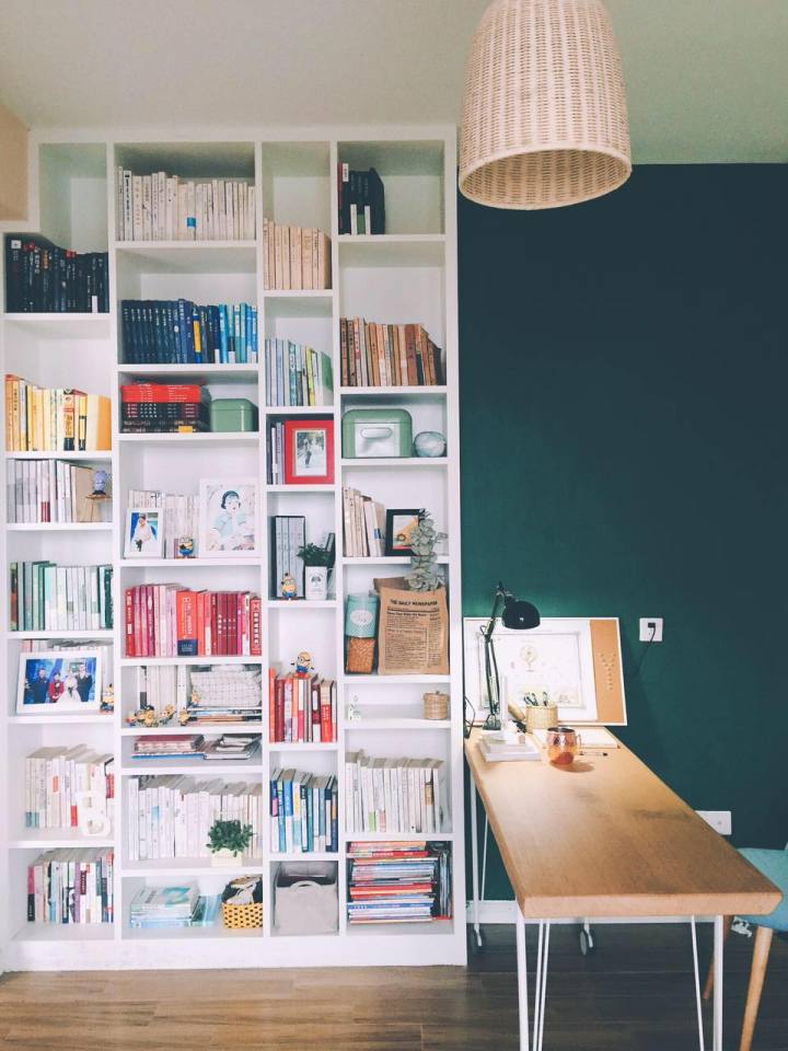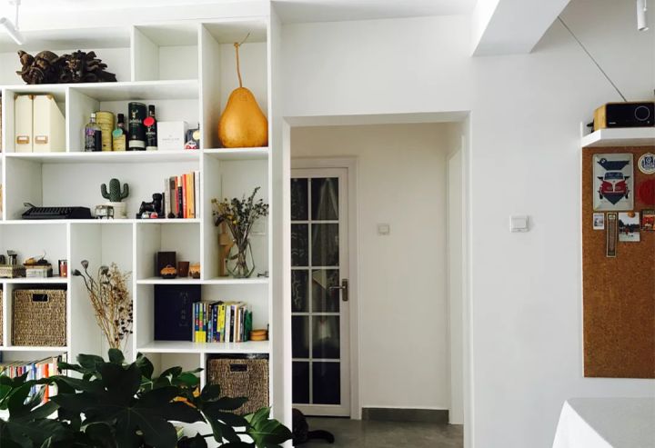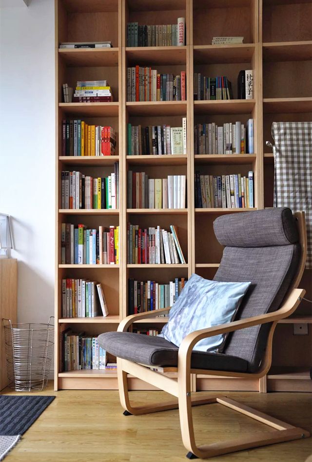开放式书架好看是好看,但家里最好做新风,有新风就不怎么落灰了。