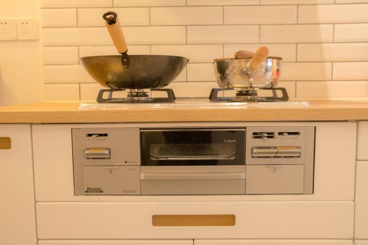 台面上的灶就是正常的燃气灶,煎炒烹炸都和普通的一样。但是有一点,日本灶的控温技术都特别强,为了安全坚决不让你温度过热,还有锅一旦离灶,火就自动调小,1分钟之后还自动断气这种功能,所以中厨大师傅那种猛火爆炸式的炒菜方式估计不行。