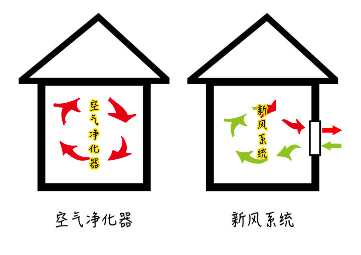 真正的新风系统必须是实现室内外空气循环的,既可以将外面的新鲜空气导入到家里边,又能将室内的污浊空气排出去。