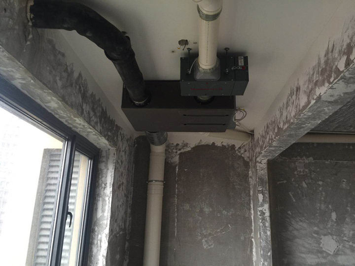 室外进风口和排风口要保持1.5米以上的距离,以免刚排出去的脏空气又被吸了进来。