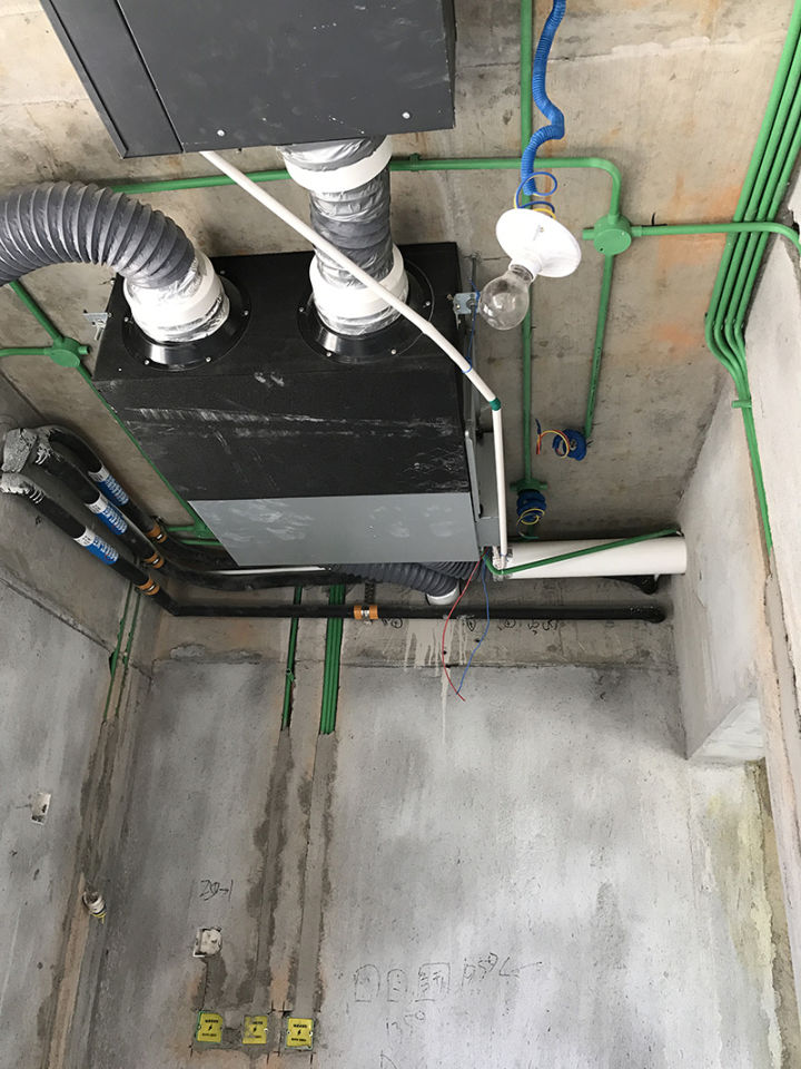 通电调试验收,确认主机是否运行正常、管道连接密封性是否正常、风量合不合适、噪音大不大等等。