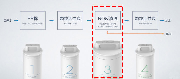 另一个大家关注的重点是废水率,一般为1:3,即1份纯水,3份废水,现在也已经有的厂商做到1:1、2:1,甚至是4:1了。