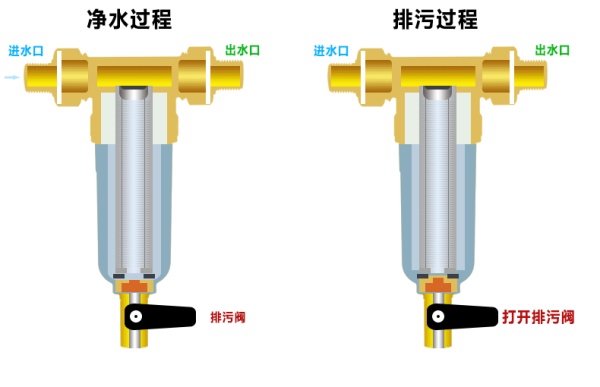 是全屋用水的第一道粗过滤设备,过滤自来水中的泥沙、铁锈等大颗粒物质。