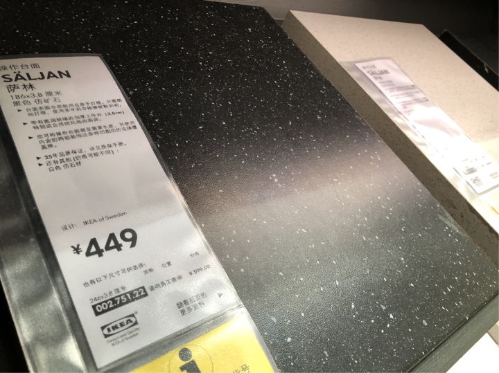 宜家提供了三种可选,分别是复合板台面、亚克力台面和石英石台面。
