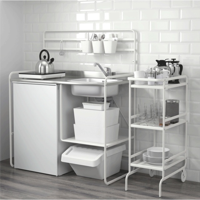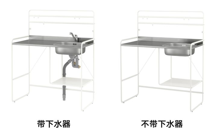 接下来是更“厉害”的一个系列,宜家苏纳思独立橱柜系列,这个系列的橱柜只有一个钢制框架和不锈钢台面,没有围板,你可以把它放在任何地方,搬家还能打包带走。