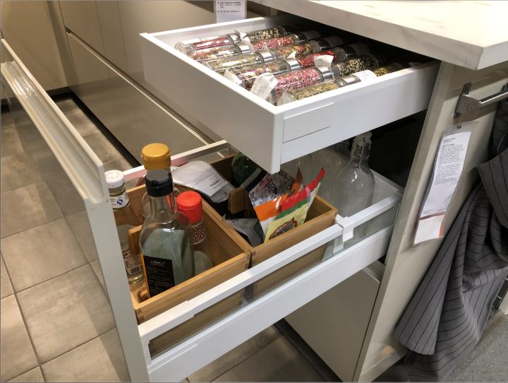 这些都是常规的抽屉配件,还有一类比较有意思的。因为不能定制的宜家橱柜放在中国式厨房里,就算再随机组合也有可能存在无法适配的情况。