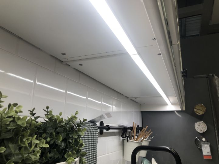 吊柜下装灯现在已经越来越流行,基本上新装修厨房都会这般设置。