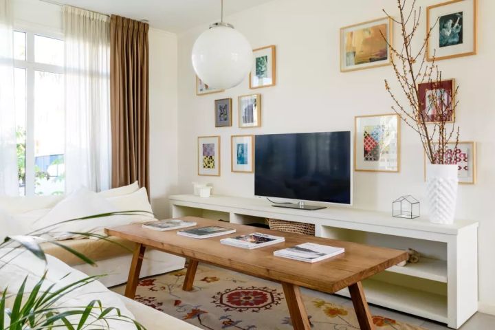 电视是合家欢首选,全家人坐在沙发上聊天,电视机一直开着,就很有家庭的味道。