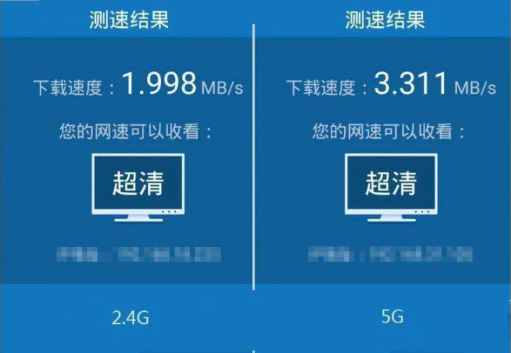 ▲2.4G WiFI和5G WiFI速度测试对比