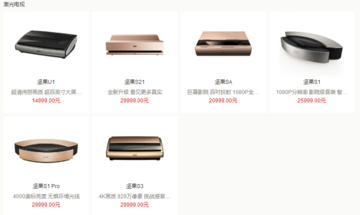 坚果成立于2011年,主要生产智能投影设备,激光电视有六种型号,价格跨度不大。