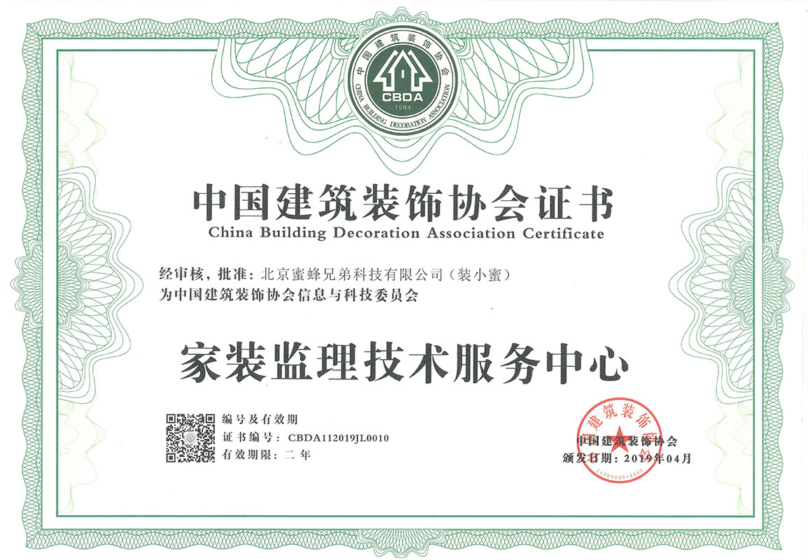 2017年4月装小蜜荣获中装协颁发的“全国监理技术服务中心”资质。