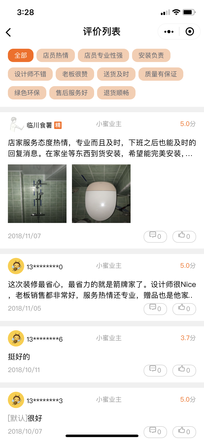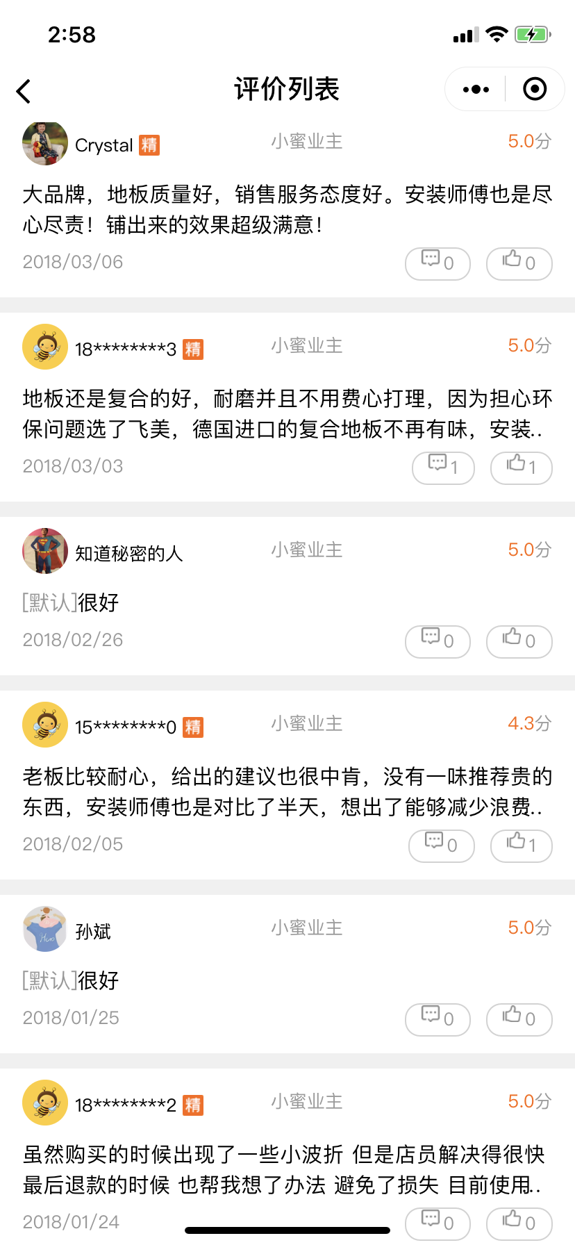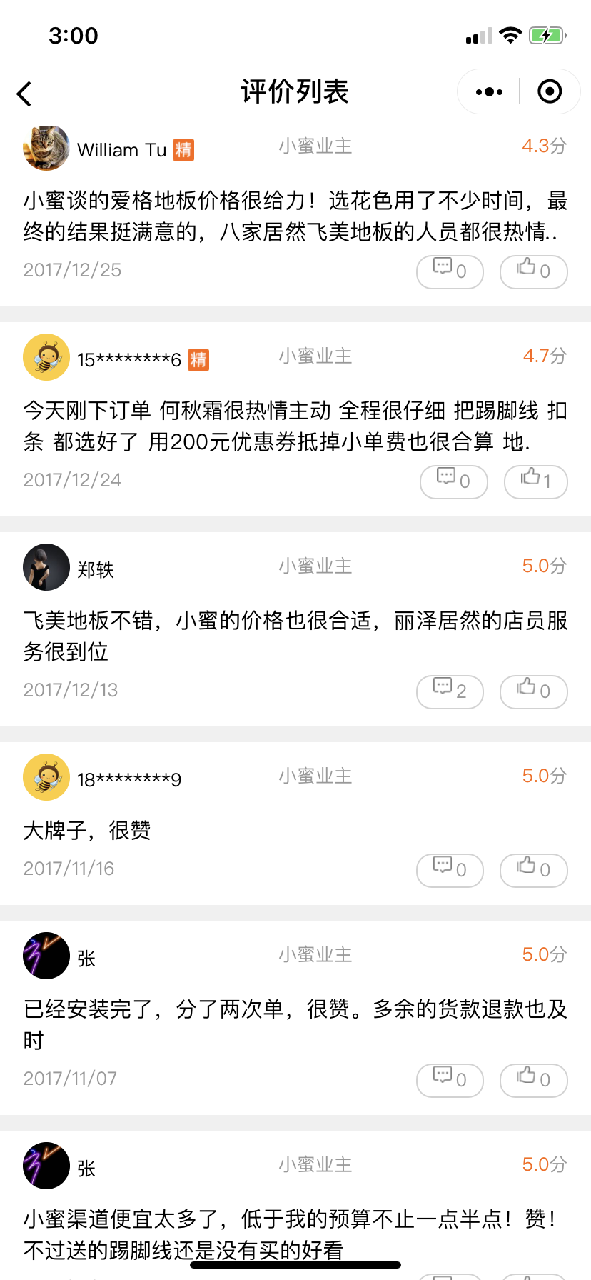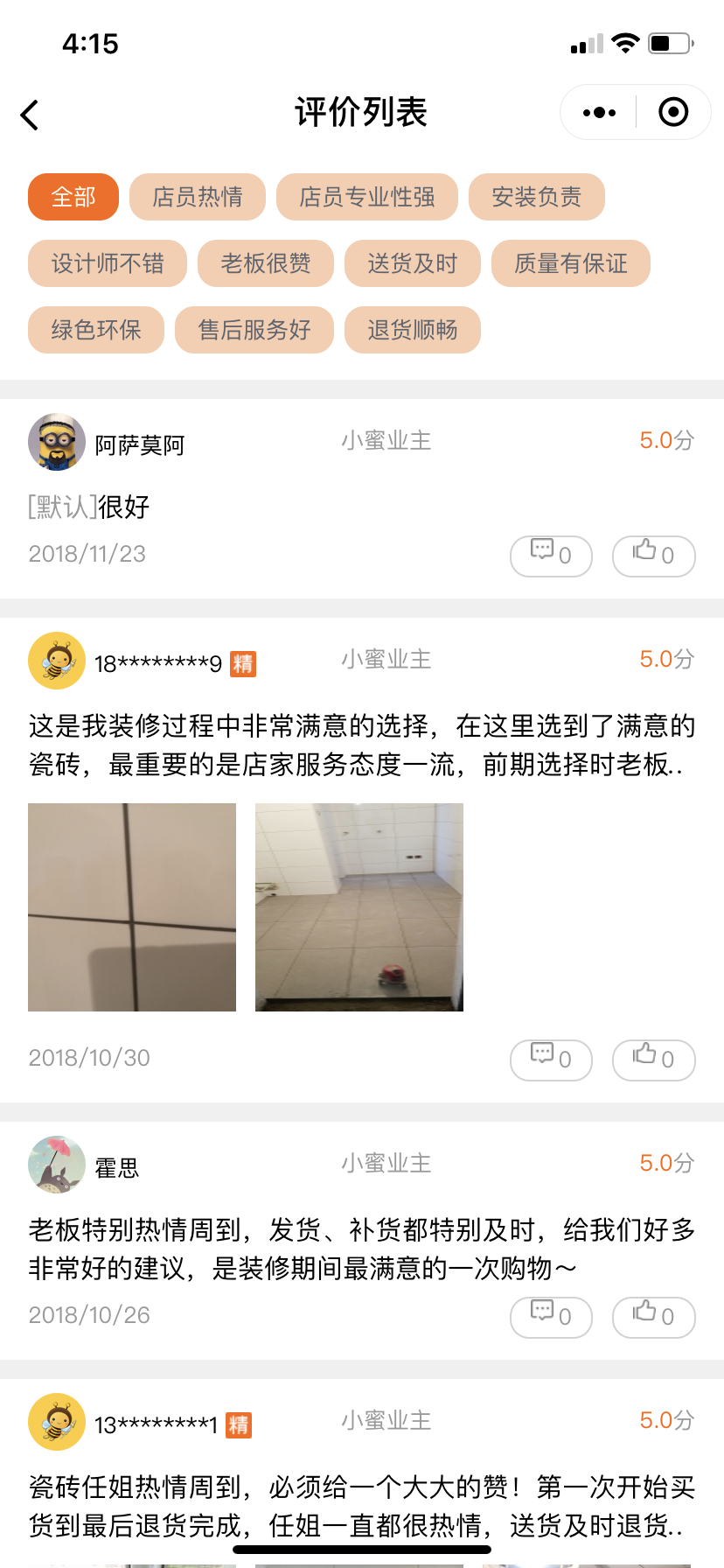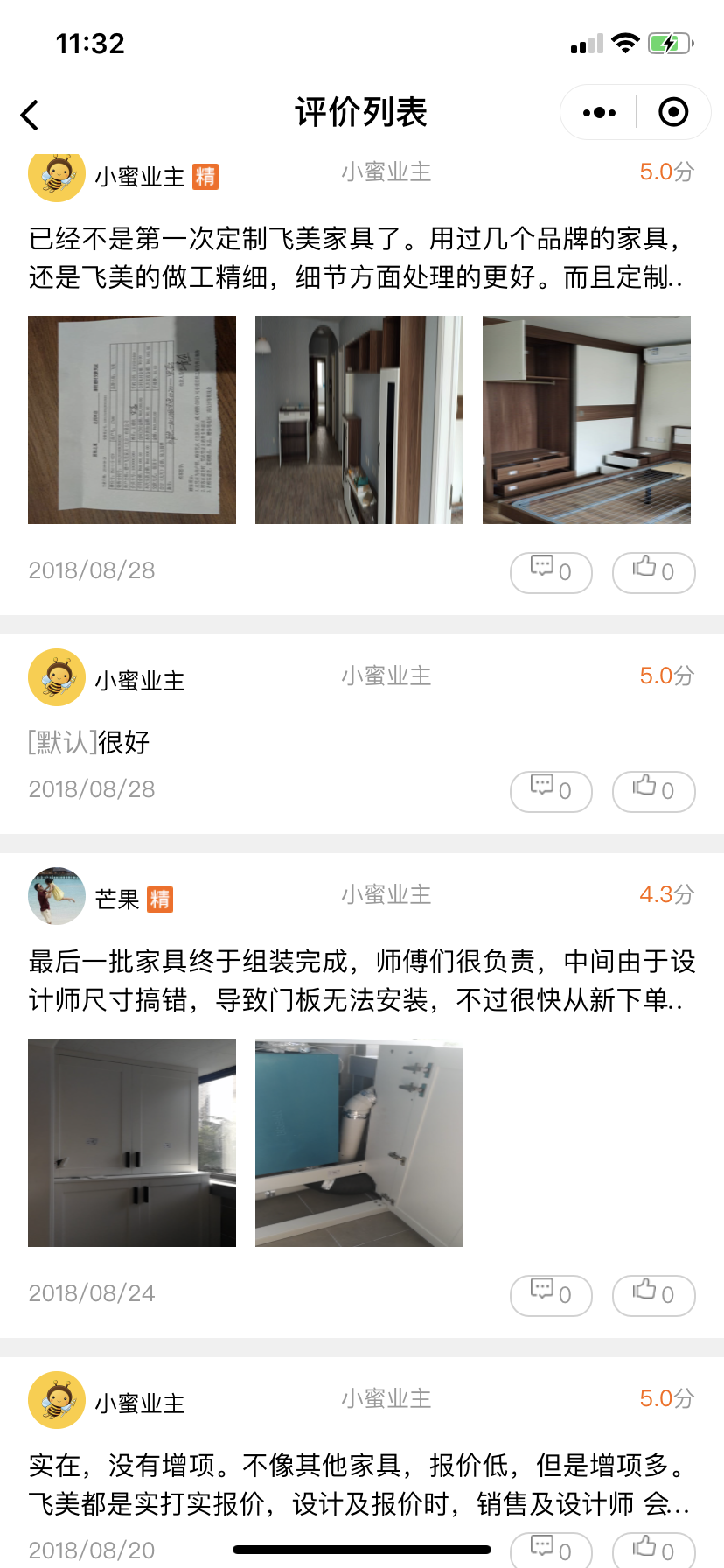 每一个评价都是真实装修业主的装修历程和心声,也记录了小蜜服务用户的点点滴滴。
