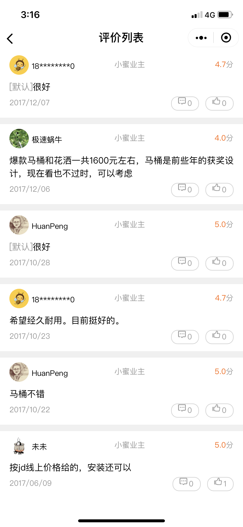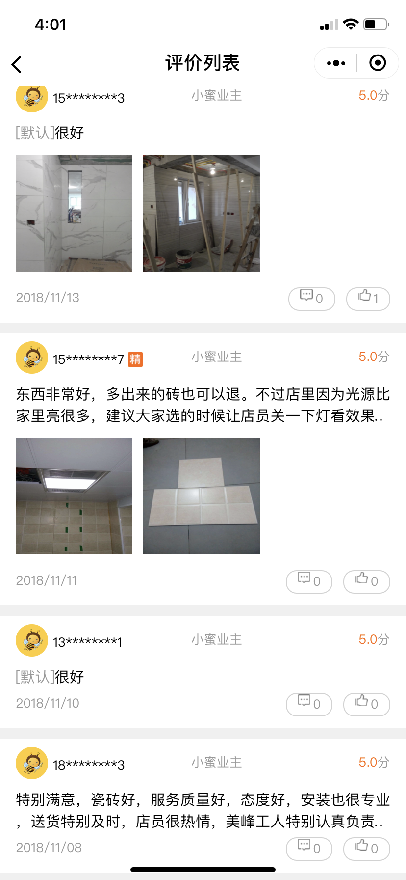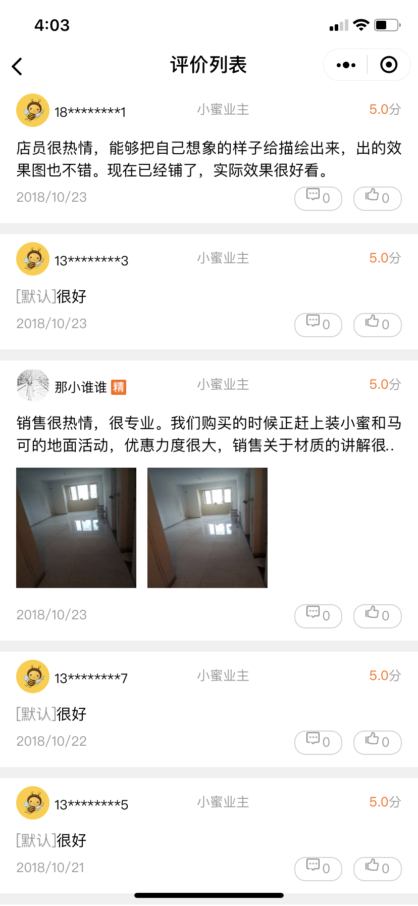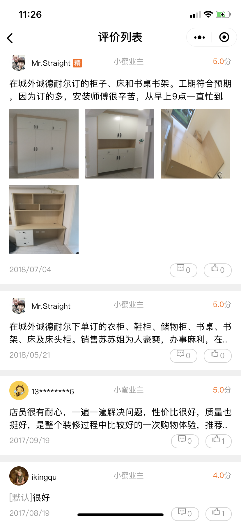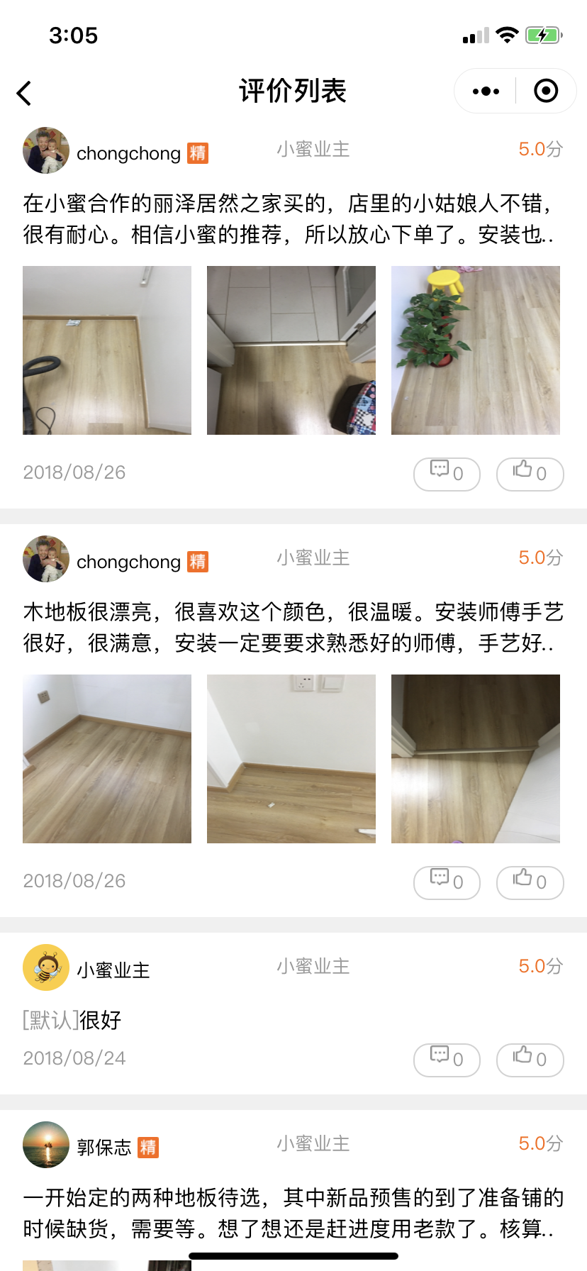 每一个评价都是真实装修业主的装修历程和心声,也记录了小蜜服务用户的点点滴滴。